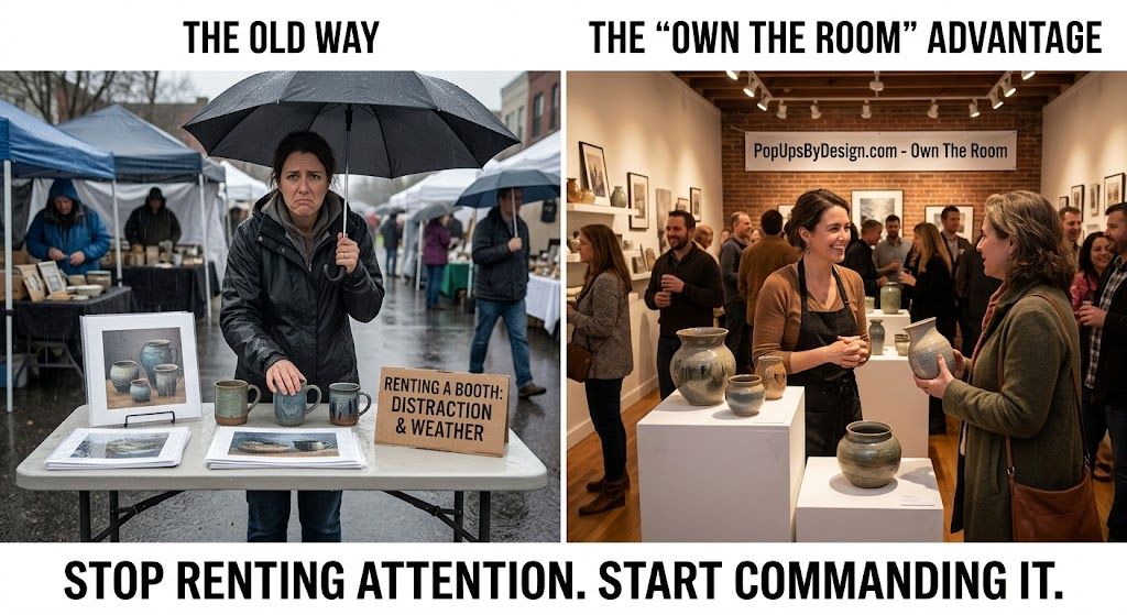 At PopUpsByDesign.com, I help artists bridge this gap by sourcing unique “alt” spaces. By utilizing non-traditional venues for exhibitions, you can drive Direct-To-Consumer (DTC) sales without the gallery tax. You keep the profit, you keep the data, and you keep the creative vision.